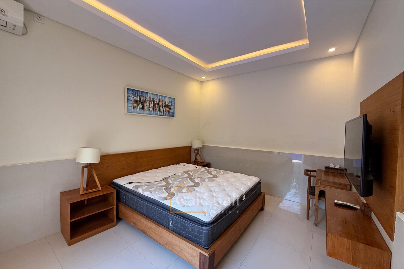 Fully furnished 2-bedroom villa in Bali with enclosed living room, private pool, air conditioning, bathtub, and modern amenities. Includes cleaning, WiFi, and pet friendly. Perfect for monthly rental.